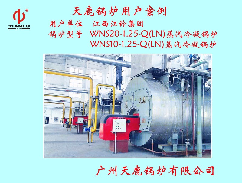 > 江西江鈴集團2臺WNS20-1.25-Q(LN) 1臺WNS10-1.25-Q(LN)蒸汽冷凝鍋爐