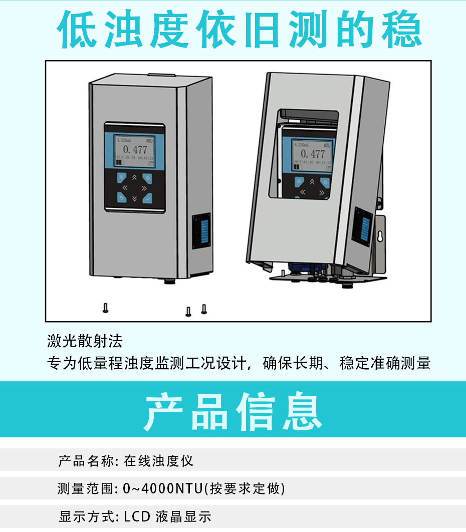 光電濁度儀是用于測量懸浮于水或透明液體中不溶性顆粒物質(zhì)所產(chǎn)生的散射程度,并能定量表征這些懸浮顆粒物質(zhì)的含量。本儀器采用國際標(biāo)準(zhǔn)ISO7027中規(guī)定的福爾馬肼濁度標(biāo)準(zhǔn)溶液進(jìn)行標(biāo)定。廣泛應(yīng)用于發(fā)電廠、自來水廠、生活污水處理工廠、飲料廠、環(huán)保部門、工業(yè)用水、制酒行業(yè)、制藥行業(yè)、防疫部門、醫(yī)院等部門的濁度測定。